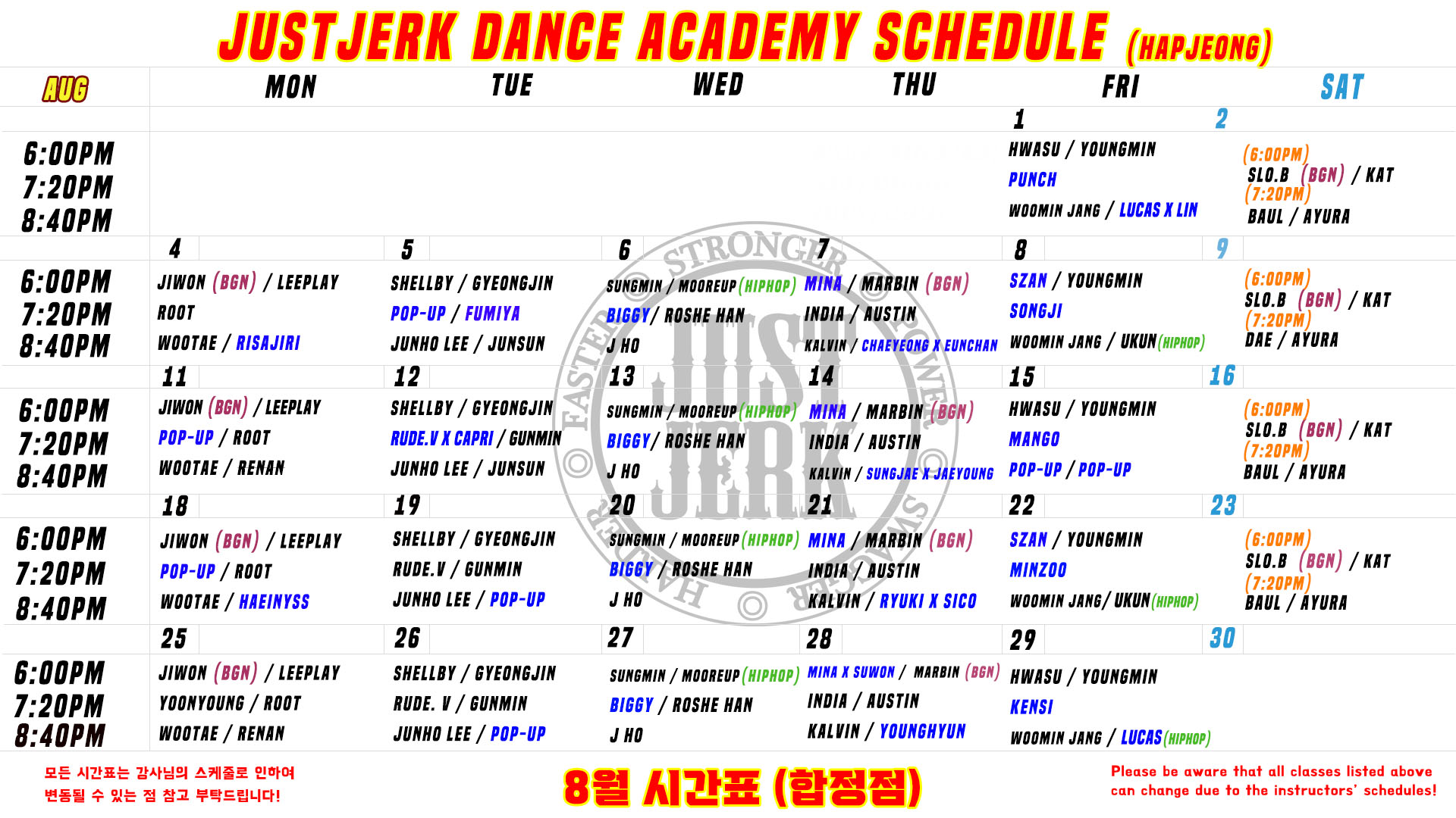 상세한 공지 및 스케쥴 확인은 아래