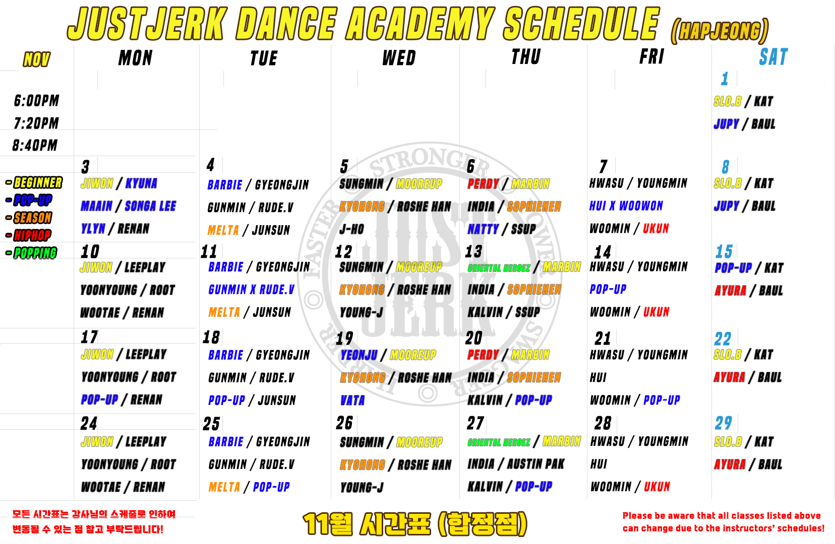 상세한 공지 및 스케쥴 확인은 아래